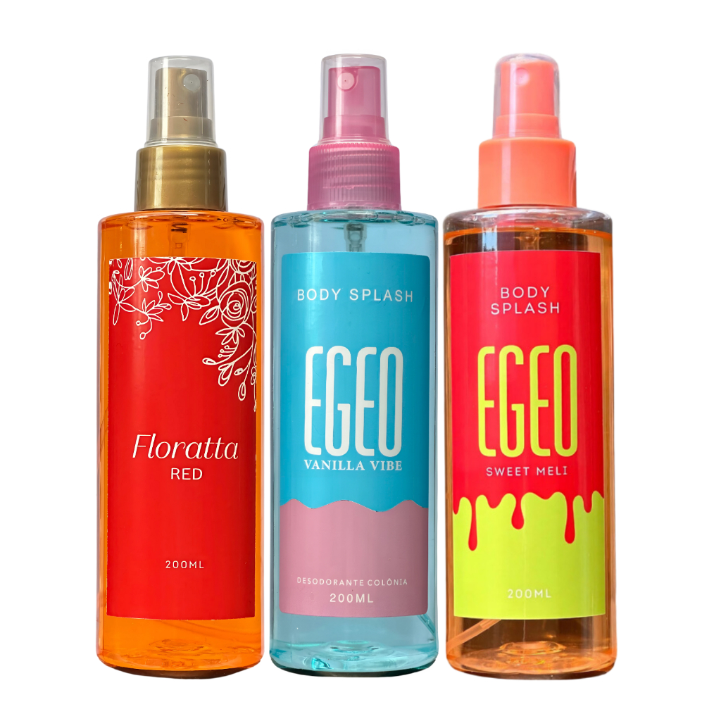Kit 3 Body Splash Egeo Vanilla Vibe e Egeo Melancia + Floratta Red (200ml cada)