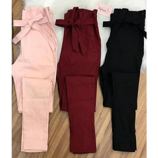 Calça Social Cintura Alta Com Laço Bengaline P M G ao GG Skinny Justa