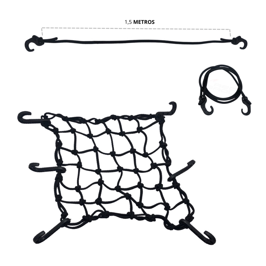 Rede Elástica Aranha COM 2 ExtensorES Capacete MOTO ELASTICO DE MOTO PARA Rede para bagageiro de moto fixação ganchos