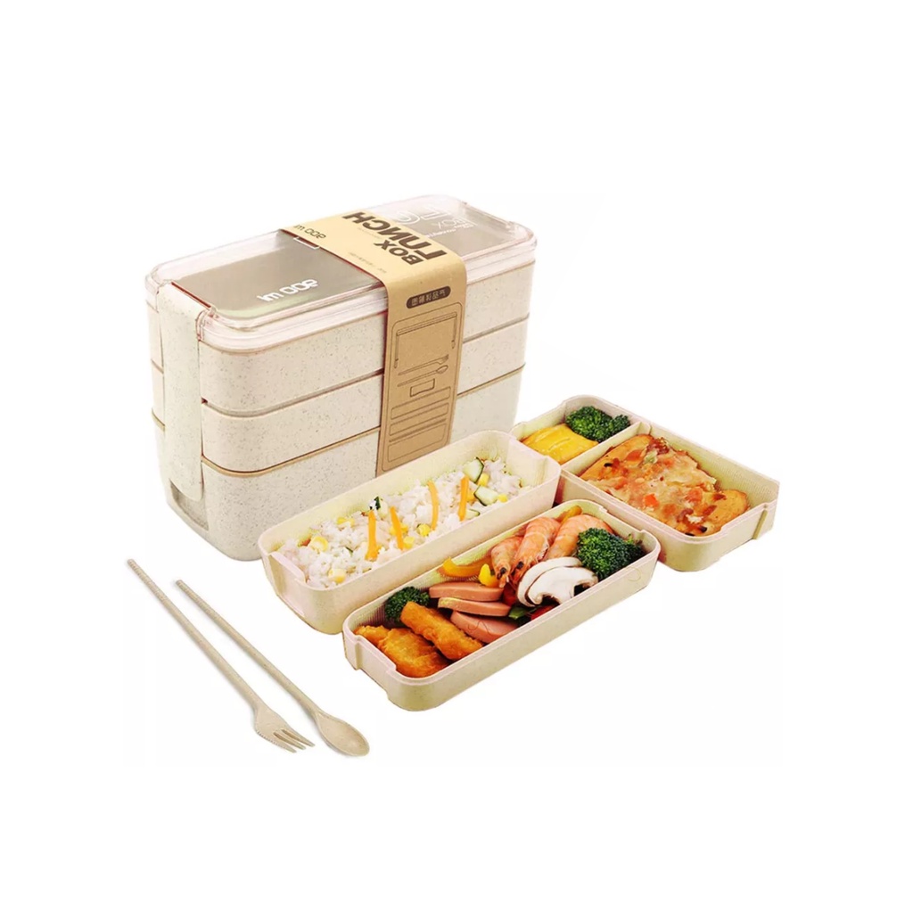Marmita Fitness com Divisória 900Ml Ecologica Pote de 3 Andares com Garfo Colher lunch box