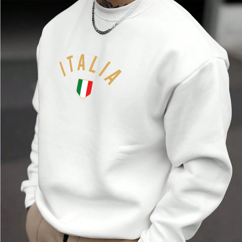 Blusa de Frio Moletom Gola Redonda com Estampa Itália