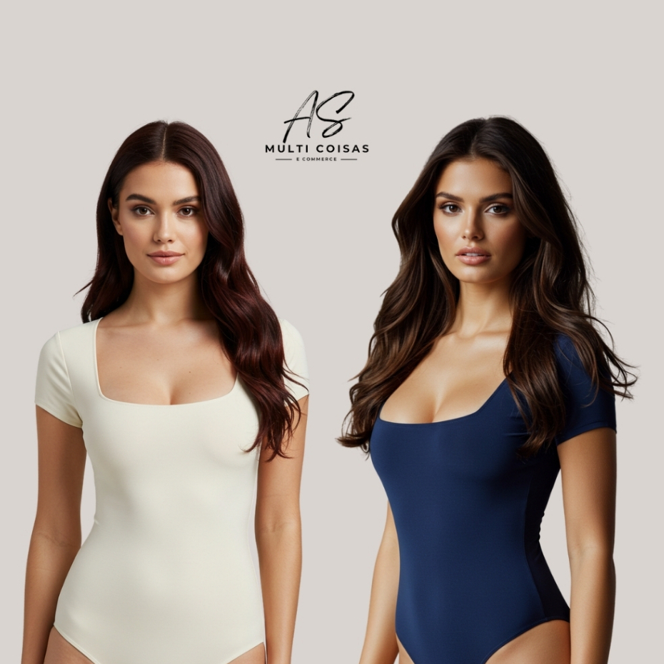BODY MANGA CURTA COM DECOTE QUADRADO COM FECHO E TECIDO SUPLEX PROMOÇÃO