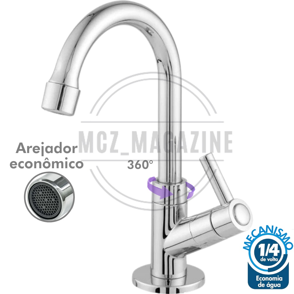 Torneira Lavatório Banheiro Lavabo 1198 C-66 1/4 De Volta Abs Cromado Bica Móvel Cd. 1990
