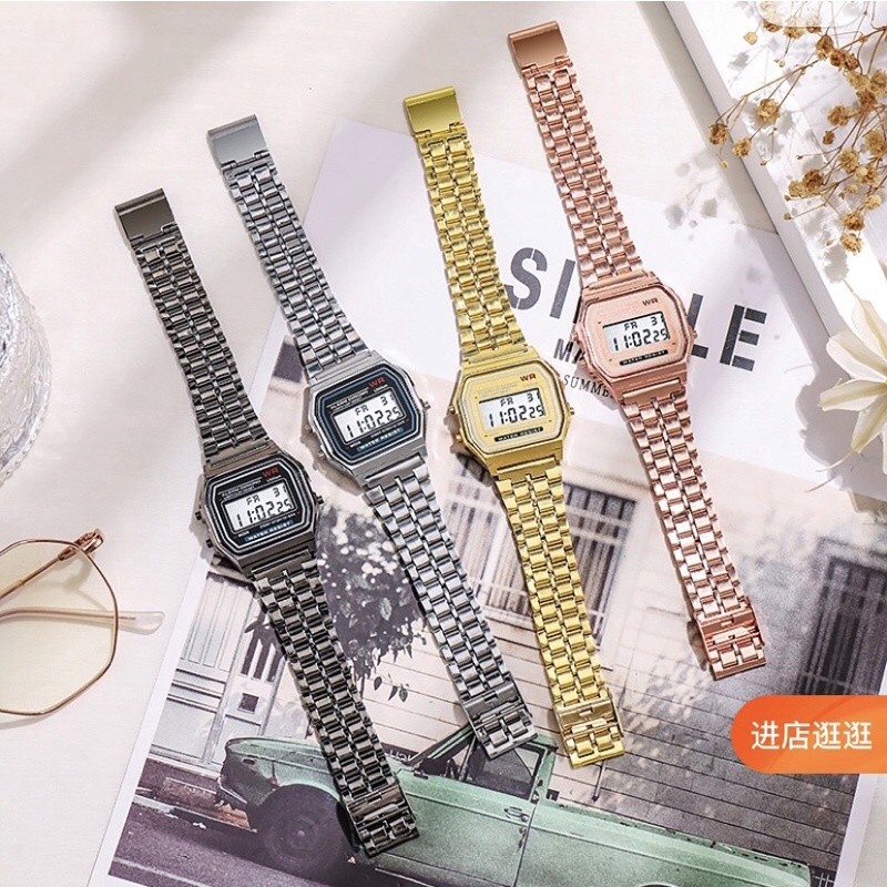 Relógio Digital Feminino Masculino Unisex Vintage Retrô de Pulso Pulseira em Aço Inoxidável à Prova D Água Dourado Skmei Original Casual Social Festa Estiloso Fashion