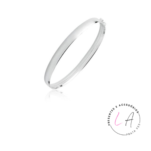 Bracelete Prata 925 Estilo Algema Fio Liso Com Fecho Trava Pulseira