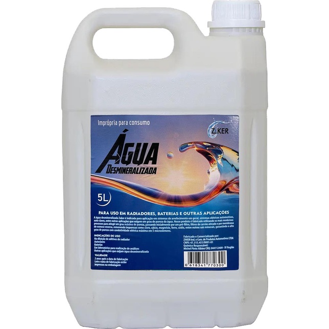 5 litros de Zaker Agua Desmineralizada P/ Baterias Radiadores