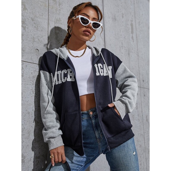 Moletom Canguru C/ Zíper Michigan Feminino/ Masculino Moda Estilo Shein Inverno 2022