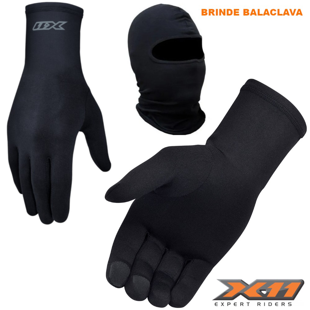 Luva X11 Thermic + Balaclava Touca Ninja - Luva Segunda Pele Touchscreen Motociclista Moto Motoqueiro Bicicleta Ciclista Com Touca Ninja Balaclava
