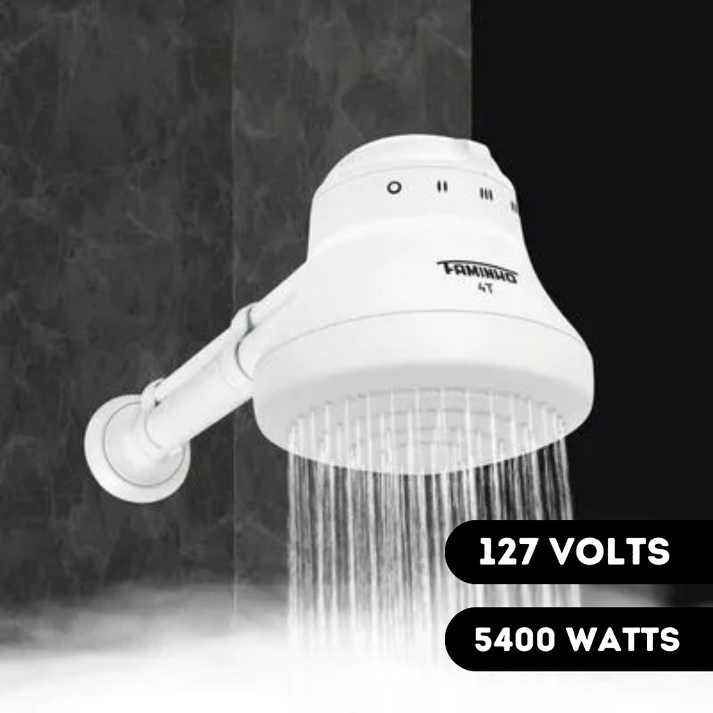 Chuveiro Ducha Fame Faminho 4T 127v 5400w Branco Cano 30cm Aquecimento Rápido Alta Potência Banheiros Residenciais