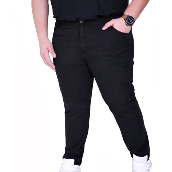 Calça Plus Size Preta Masculina Jeans Sarja Dark Com Lycra numero 38 ao 66