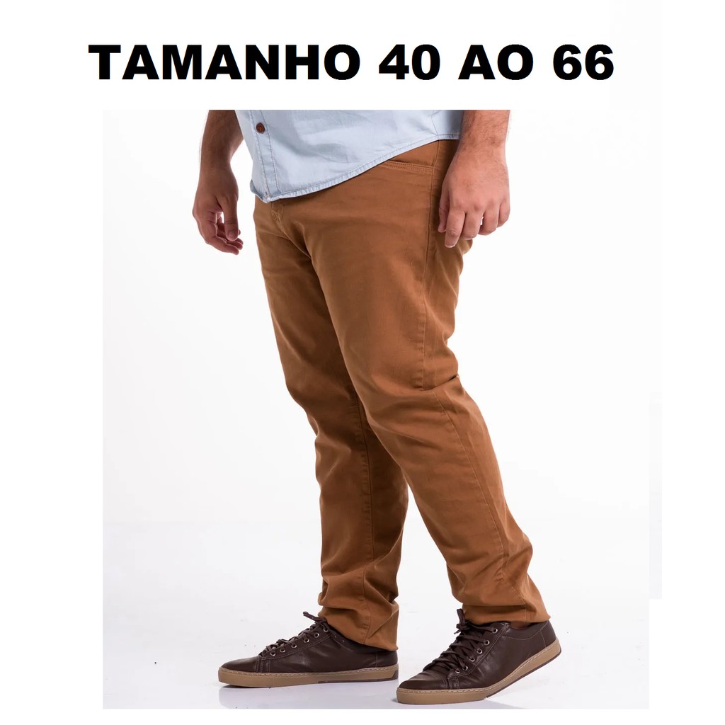 Calça Masculina Sarja com lycra caramelo Slin 40 Ao 66 Plus Size tamanhos grandes excelente qualidade ótimo acabamento preço imbativel envio imediato