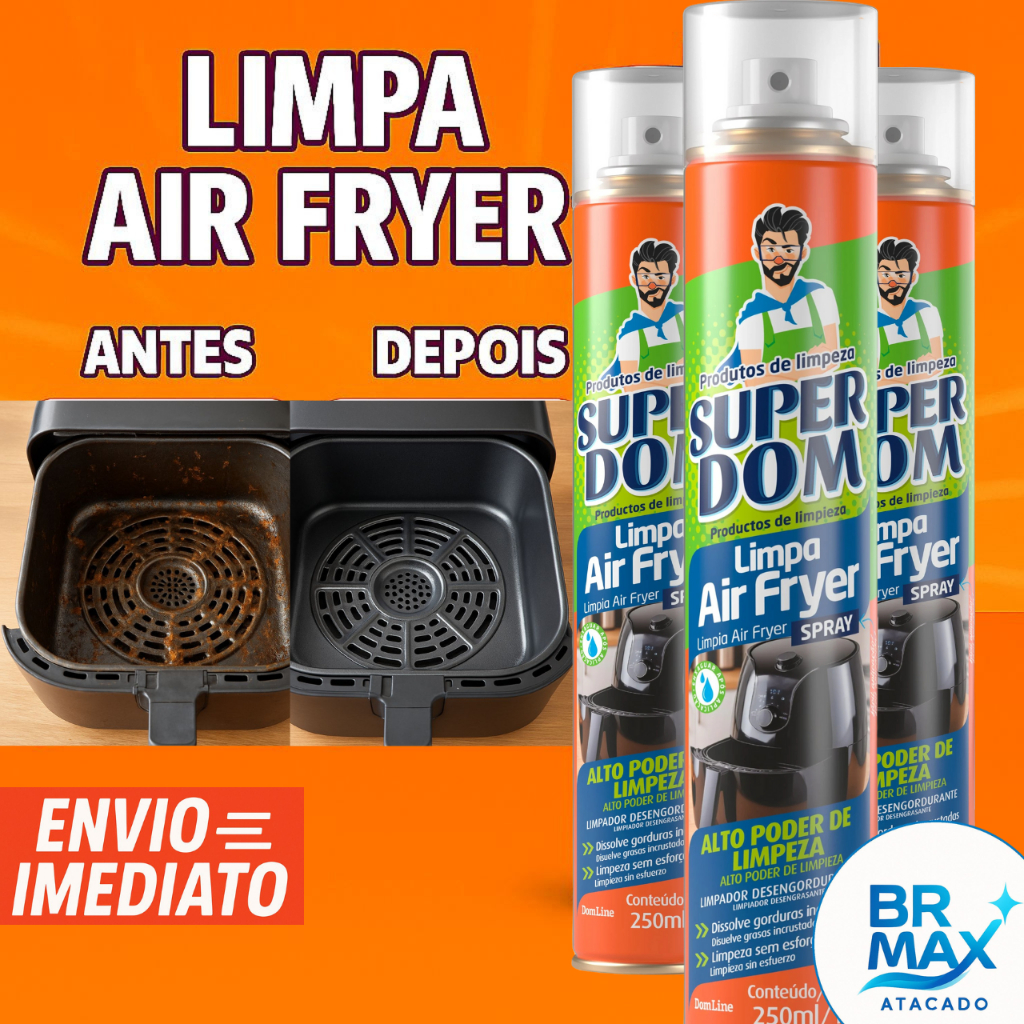 Kit Spray Espuma Limpa Air Fryer Super Dom 250ml Alto Poder de Limpeza e Desengordurante Limpa Fácil
