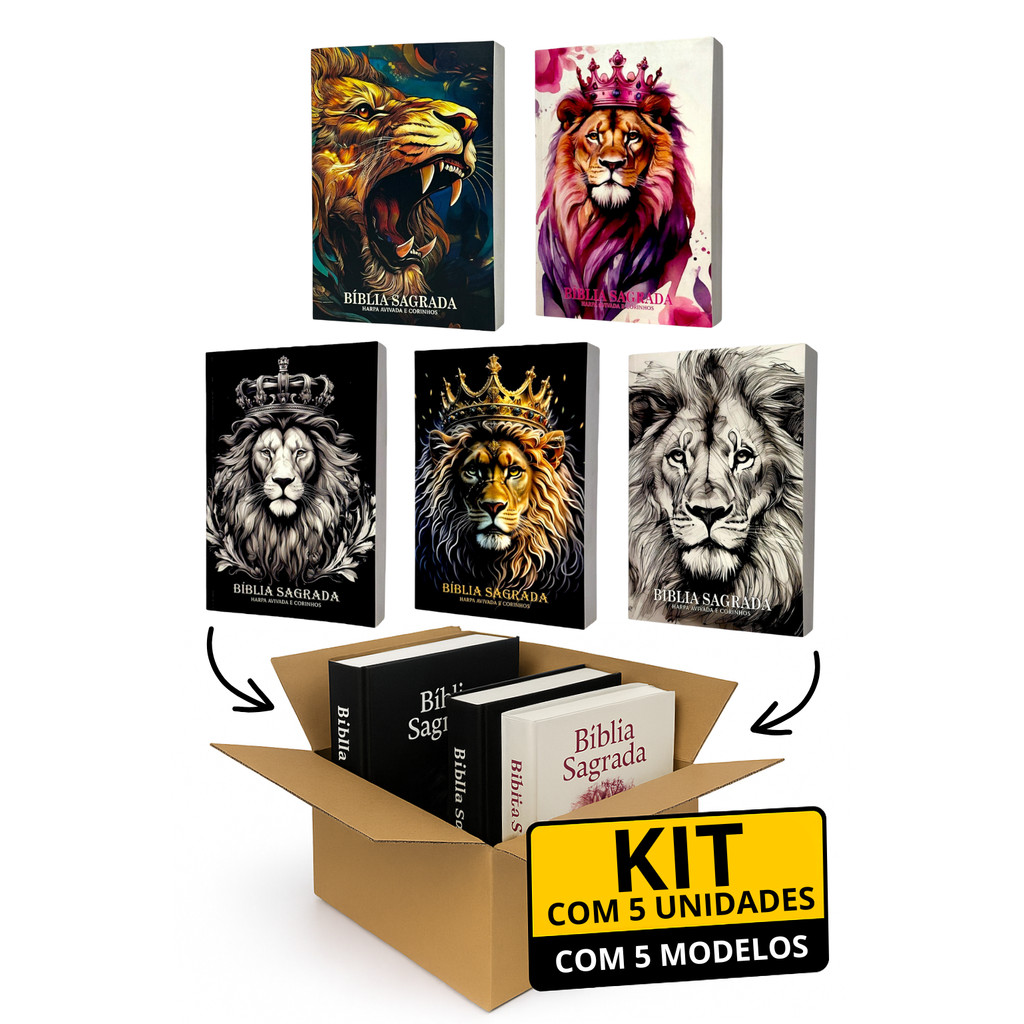 Kit Biblia Sagrada Capa Dura Exclusiva Leão + Rosa Floral com Harpa Letra Média Folha Ecológica com Índice Livraria Pergaminhos