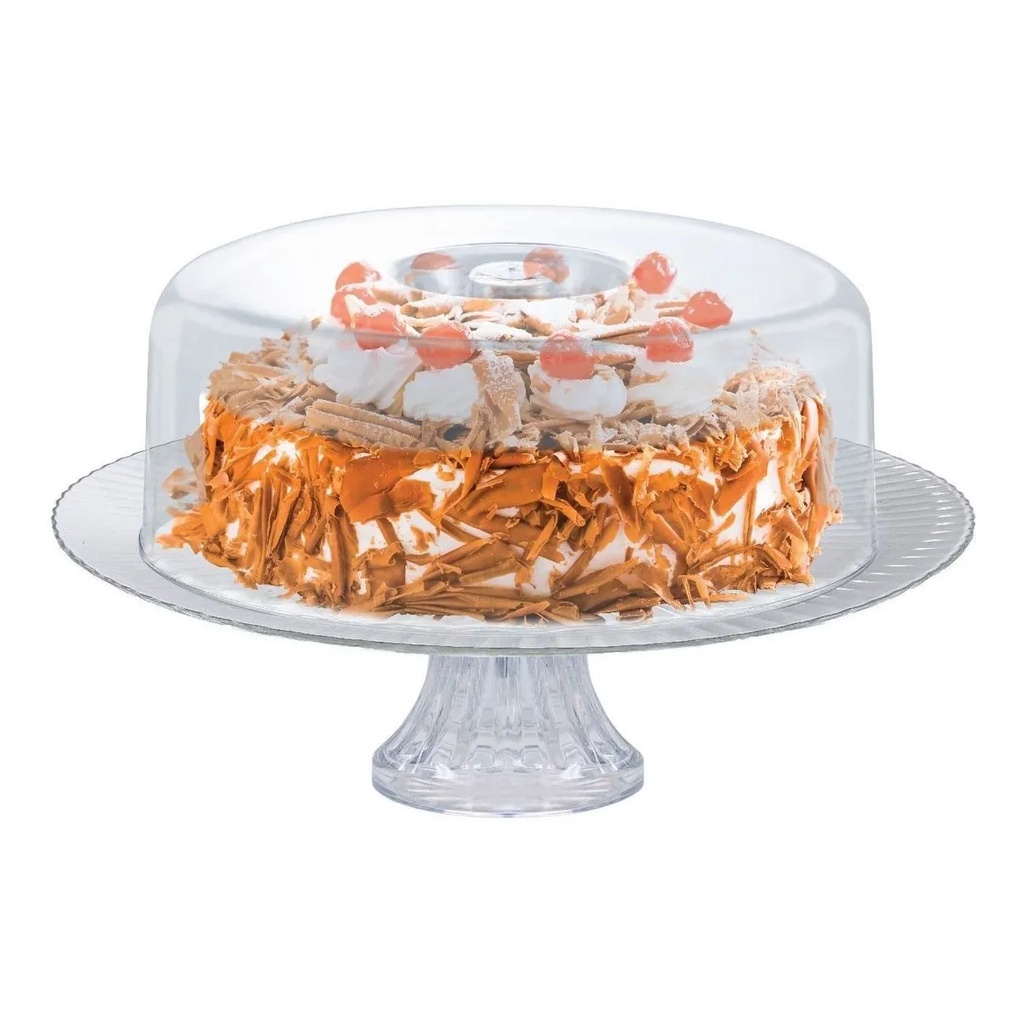 Boleira com prato e tampa de vidro com base resistente para bolos, doces, pudim e tortas