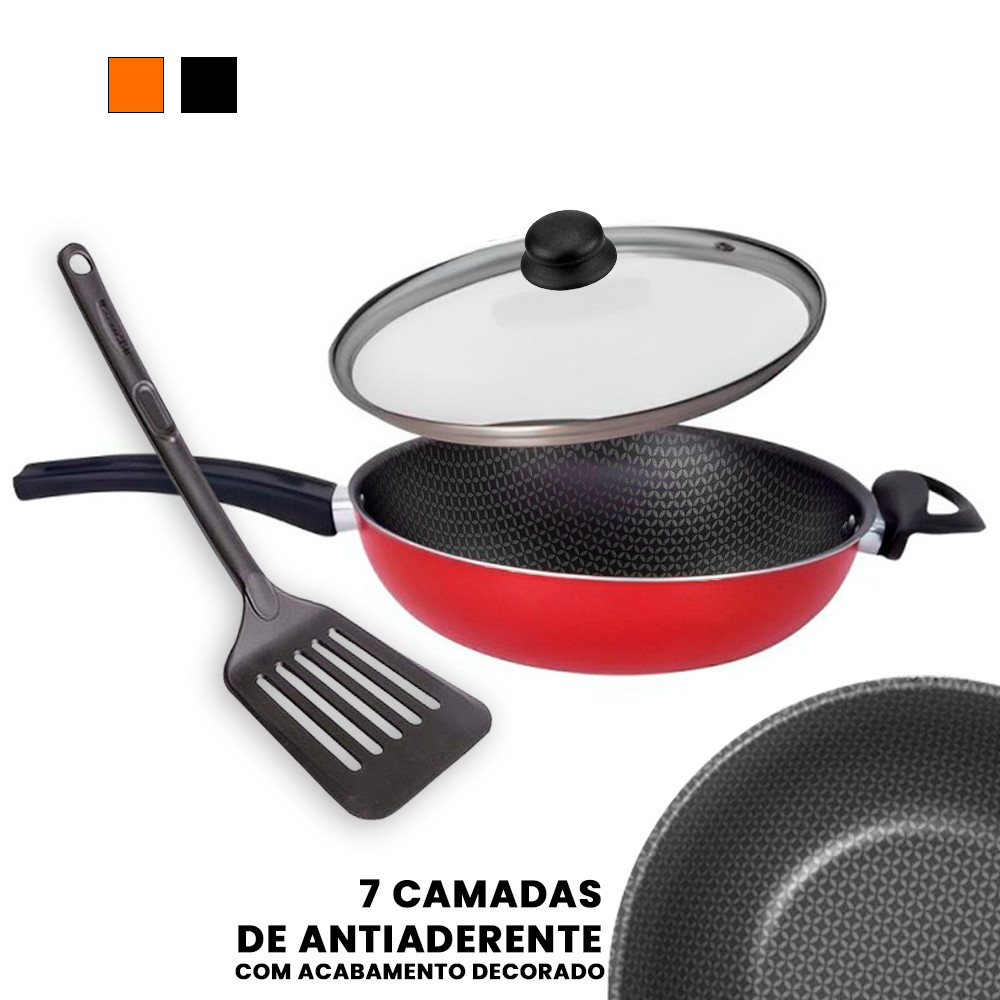 Frigideira Antiaderente Tramontina Wok 28cm Com Tampa Alimentos Saudáveis Saborosos Panela Grande