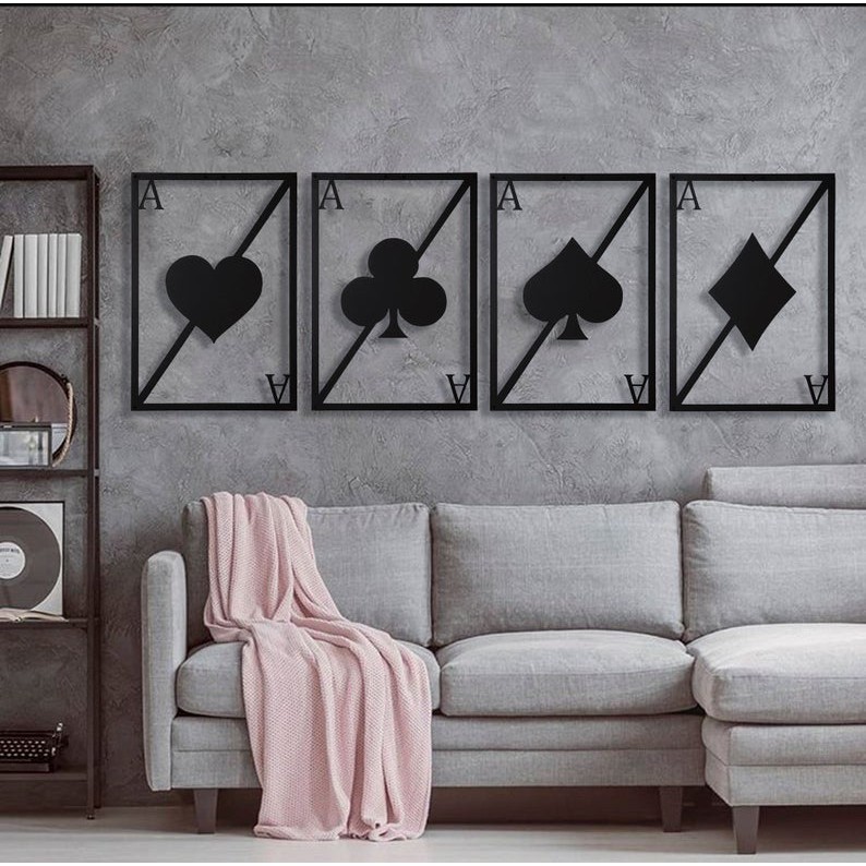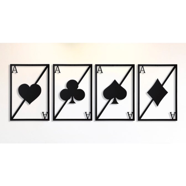 Quadro Decorativo Baralho Poker Cartas Royal Quadra de A's Quadro Vazado Decoração Escultura sala de jogos de parede MDF
