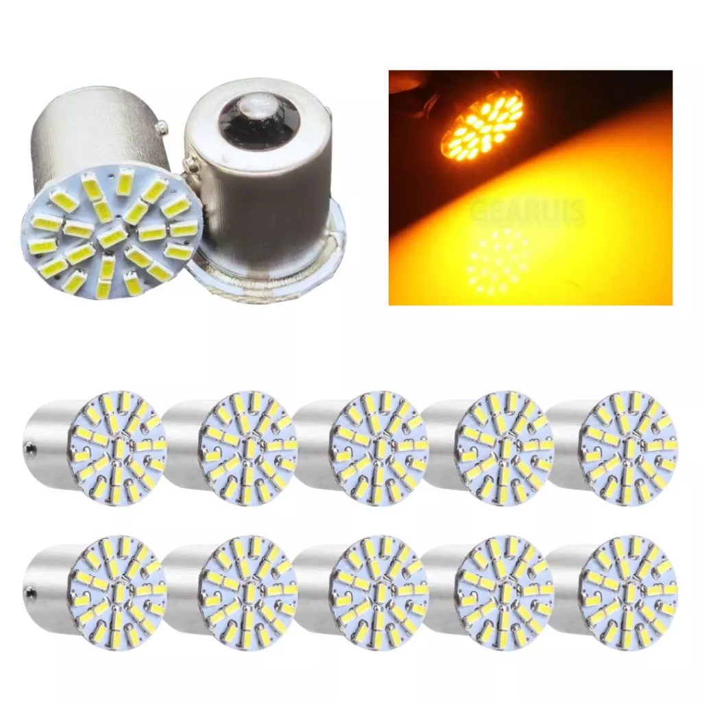 Kit 10 Lampada 22 Led Bau15s 1 Polo Py21w 1056 3014 Laranja Ambar 12v
