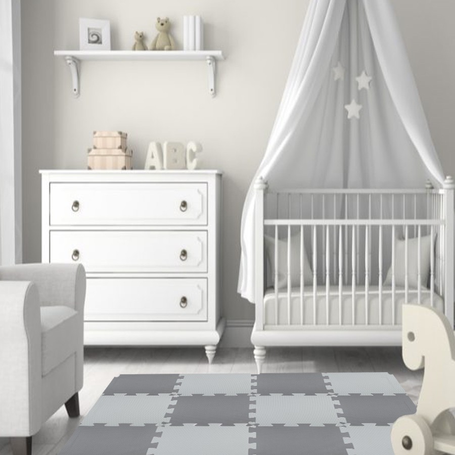 Kit 8 Tapete Tatame Eva + Bordas de Acabamento Loja da Maria 50x50x1cm 10mm Tons de Cinza
