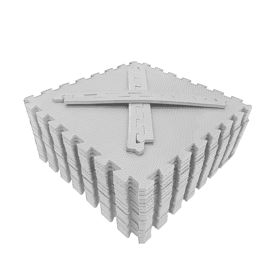 Kit 12 Tapete Tatame Eva + Bordas de Acabamento Loja da Maria Fitness Bebe 50x50x1cm 10mm Cinza Claro