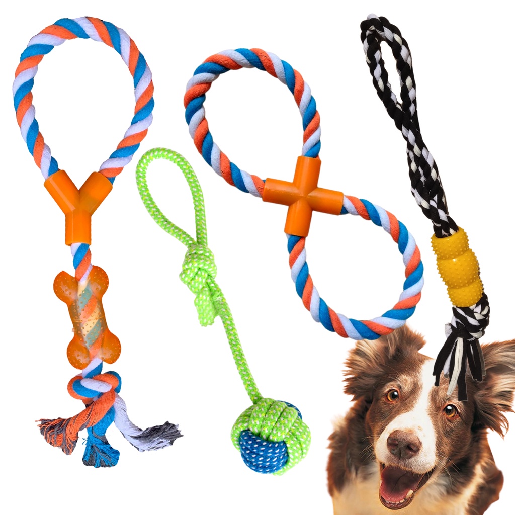 Kit 4 brinquedos para cachorro Mordedor puxador Bola Corda