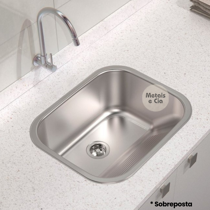Tanque Inox Lavanderia 44x44 Com Válvula Aço Inox 304 para Aplicação cozinha e varanda e banheiro