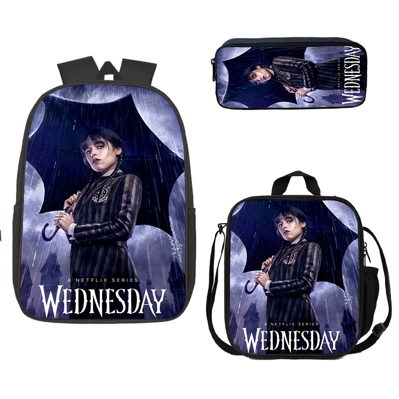 Kit Mochila Escolar Wednesday Machilas Infantil Menino /lancheira/ Pen Bag Pencil Case【10 Cores】