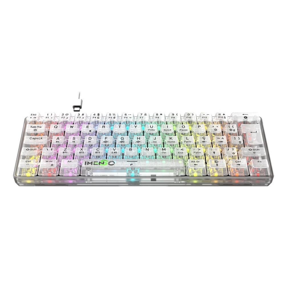 Teclado Gamer RGB Sem Fio Com Cabo Tipo C Compacto Imenso - Branco - Português Brasil