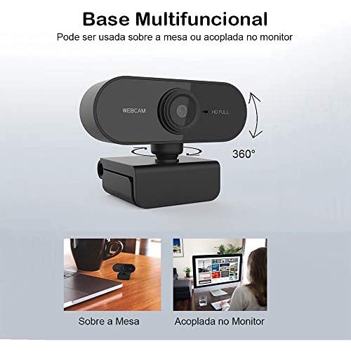 Webcam Câmera Full Hd Computador 1080p Usb Visão 360º Com Microfone Videoconferência Vídeos Fotos PC Notebook Resolução