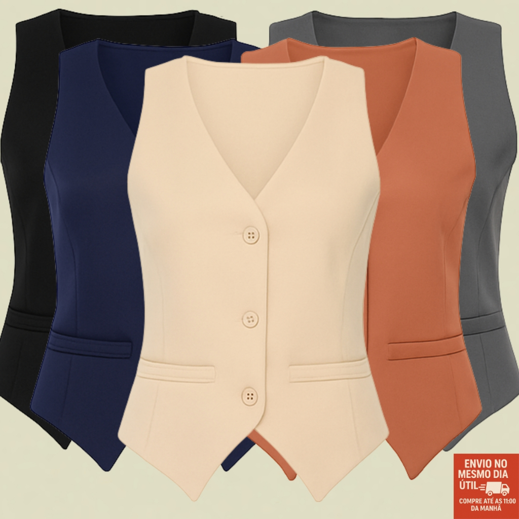 Colete Alfaiataria Feminino Social Forrado Com Três Botão Gola V