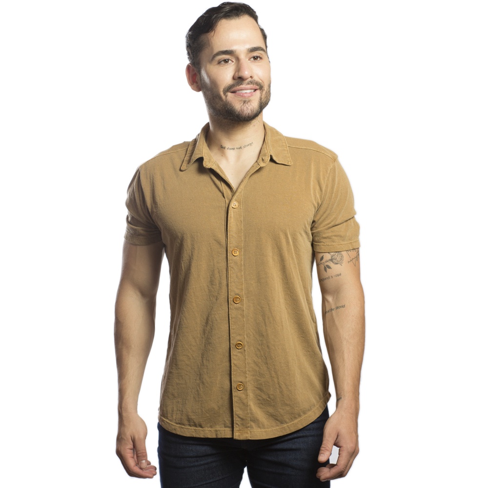 Camisa Masculina de Botão Manga Curta Malha Sustentavel Homem Moderno Estilo
