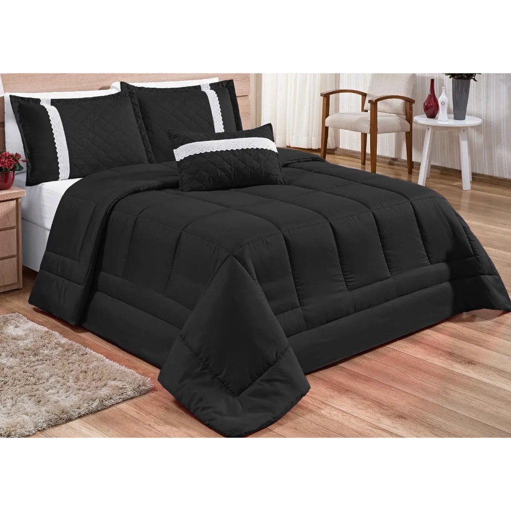 Kit Colcha Edredom Oliveira Casal Queen Cobre Leito 6 Peças - Cor Preto