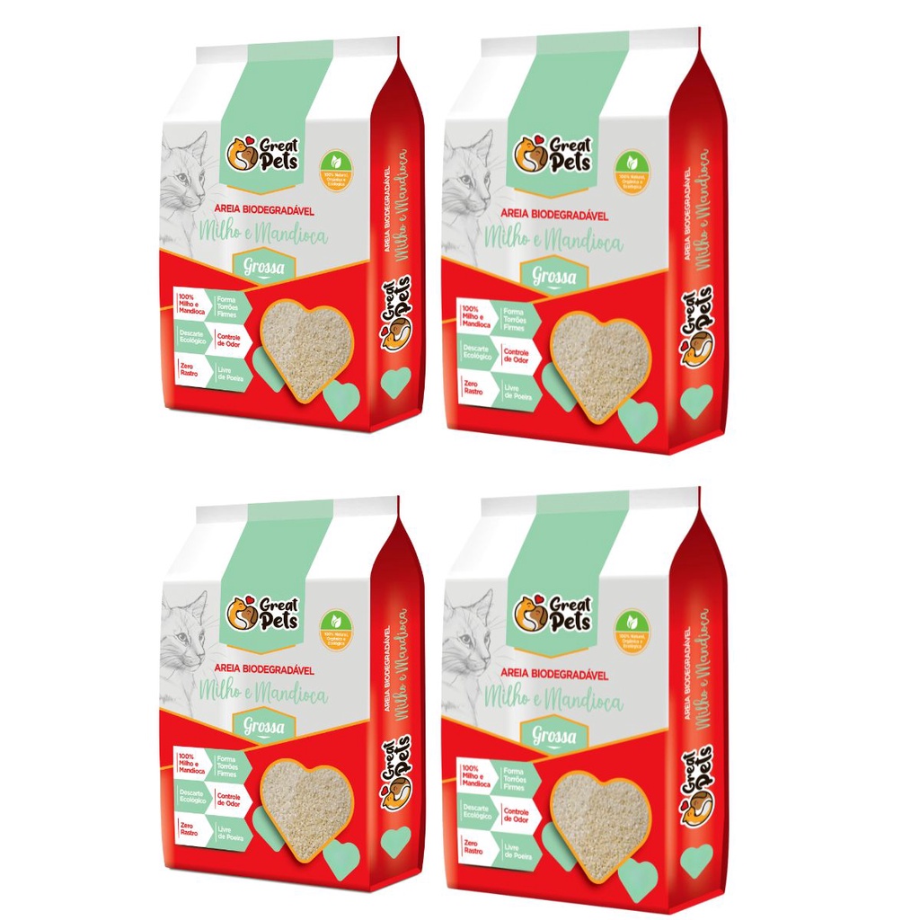 Kit 4 Areia Higiênica Biodegradável Para Gatos Great Pets Grossa 2kg