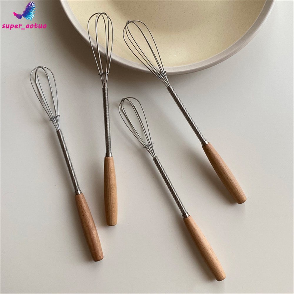 Mini Batedor Manual De Ovo De Aço Inoxidável De Manteiga De Cozinha Portátil Com Cabo De Madeira
