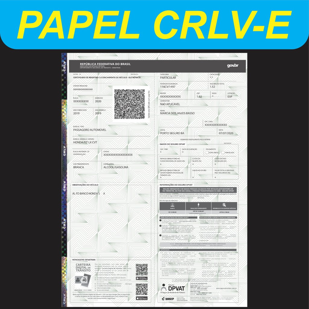 Papel crlv para despachante pacote com 100 folhas