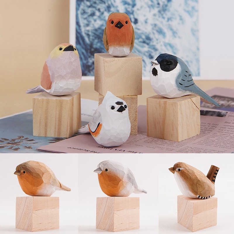 Pássaros De Madeira Estátua Ornamentos Decorativos Esculpida Robin Bird Nordic Home Decoração Artesanato Jardim Figurino Brinquedos De Presente