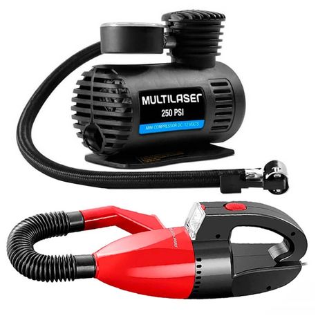 Mini Compressor Ar 250 Psi e Aspirador Portátil 12v Multilaser