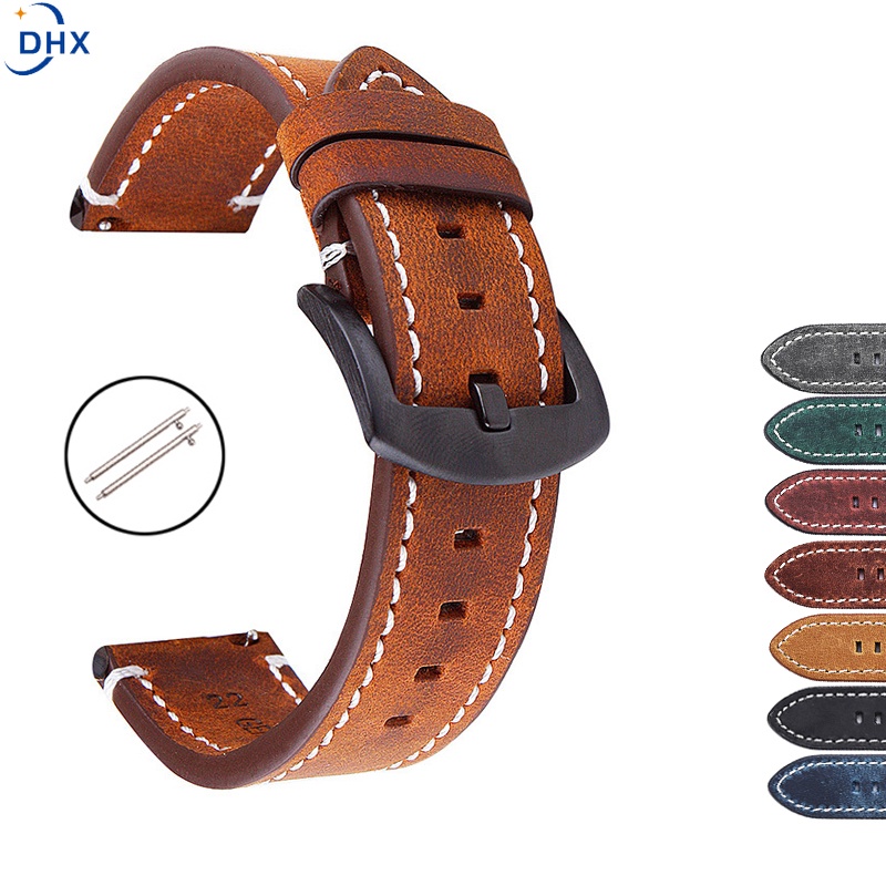 Pulseira De Relógio Em Couro Genuíno Vintage 18mm 20mm 22mm 24mm Bovino Multi Cores Acessórios