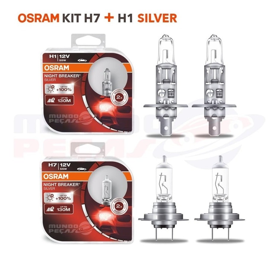 Lampada Osram Night Breaker Silver H7 E H1 Par 100% + Luz