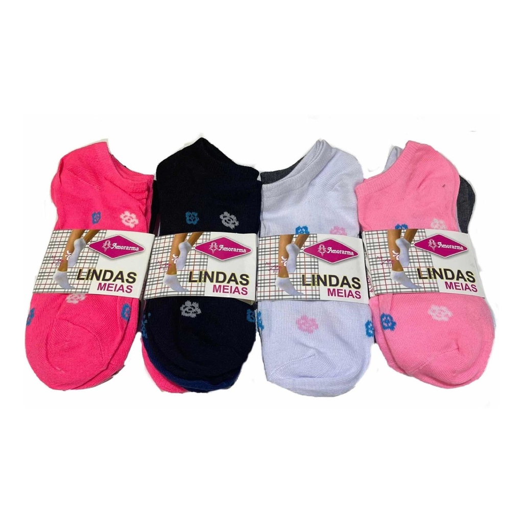 Kit 12 Pares Meias Feminina Soquete Cores 35 ao 40