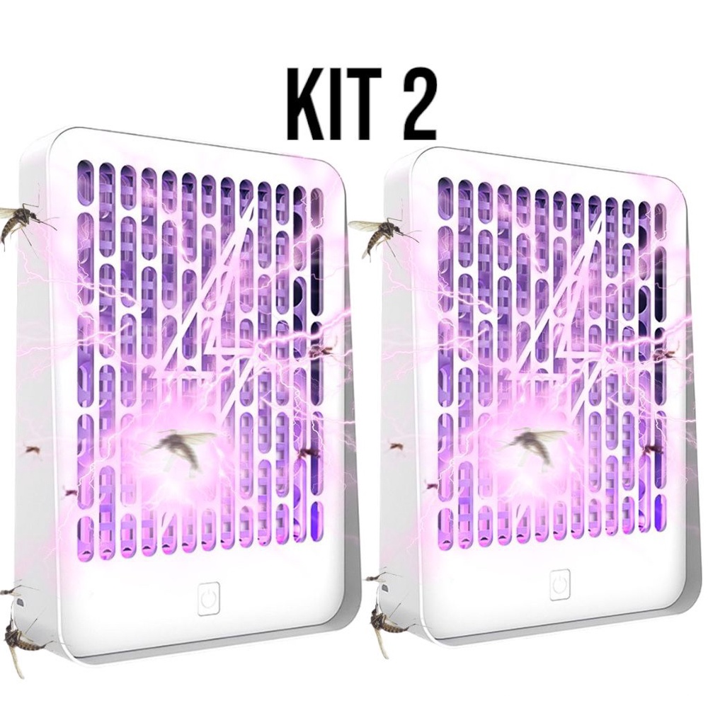 KIT 2 Armadilha Luminária Elétrica Segura Pega Mosquitos Pernilongo Silencioso Elegante Uso Dia E Noite USB Opera 24h