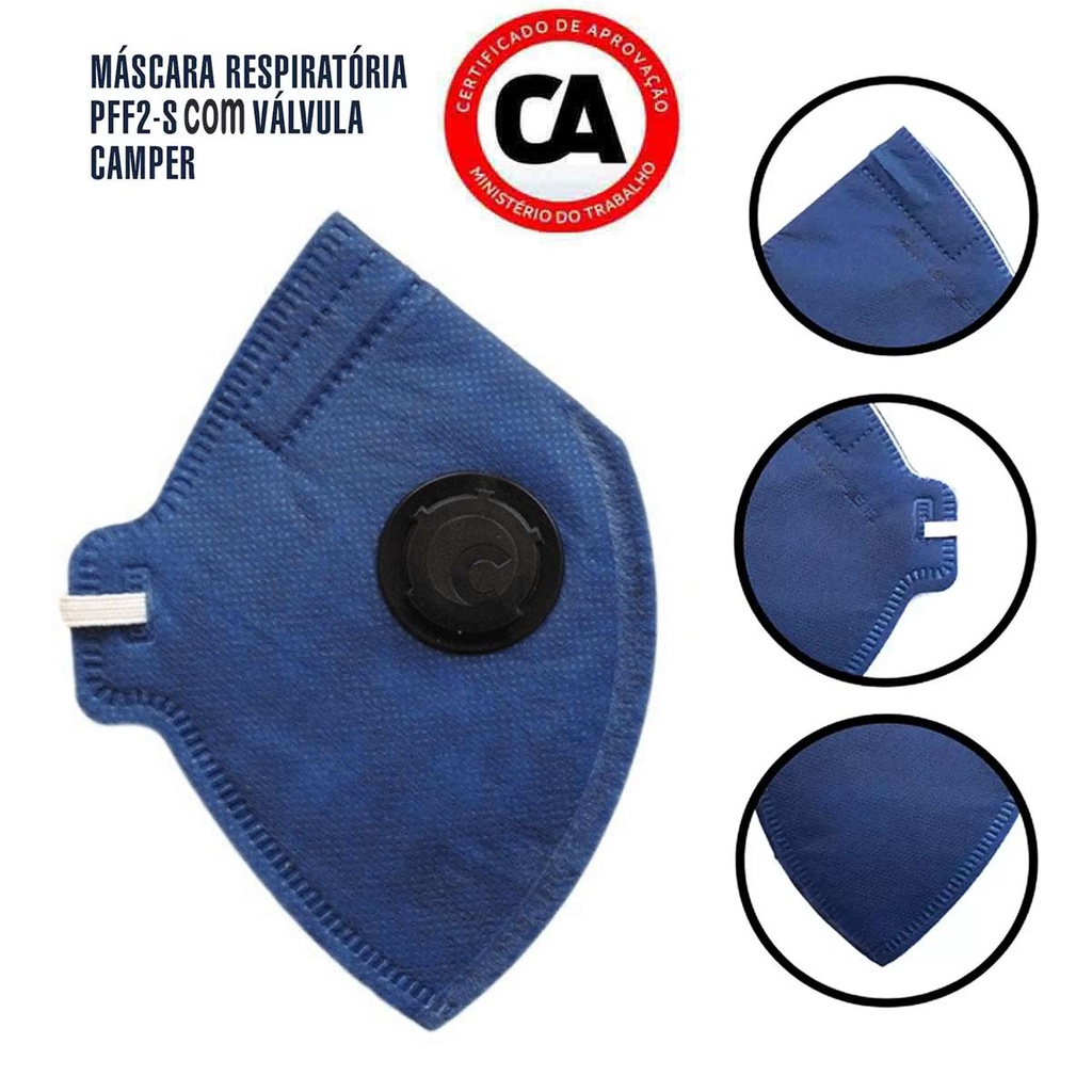 Kit 50 Máscara Respirador Descartável PFF1 Com Válvula Azul De Proteção Poeiras e Névoas Pó