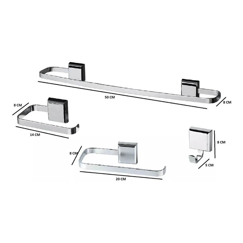 Kit de Acessórios para Banheiro Duplo Grego Metal 4 Peças Suporte Quadrado Alto Brilho Troia