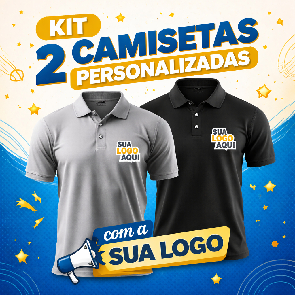 Kit 2 Camisetas Polo Personalizadas com a sua Logo Bordada no Peito Promoção Qualidade Conforto