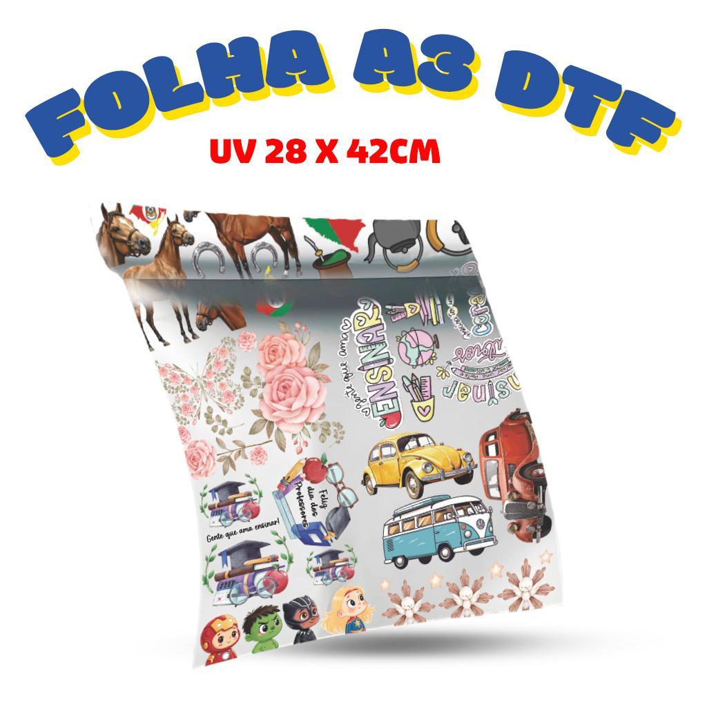 Folha DTF UV Personalizada Impressa com sua Arte Adesivo Estampa Qualidade Envio Rápido