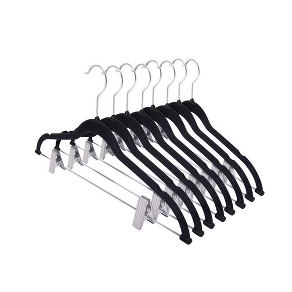 Kit 10 Cabides De Veludo Com Presilha De Aço Slim Antideslizante Ultra Fino Preto GH310