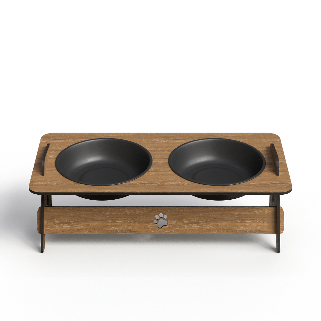 Comedouro Elevado para Cachorro e Gato em Mdf Preto/Marrom com Tigela de Plástico Tendência