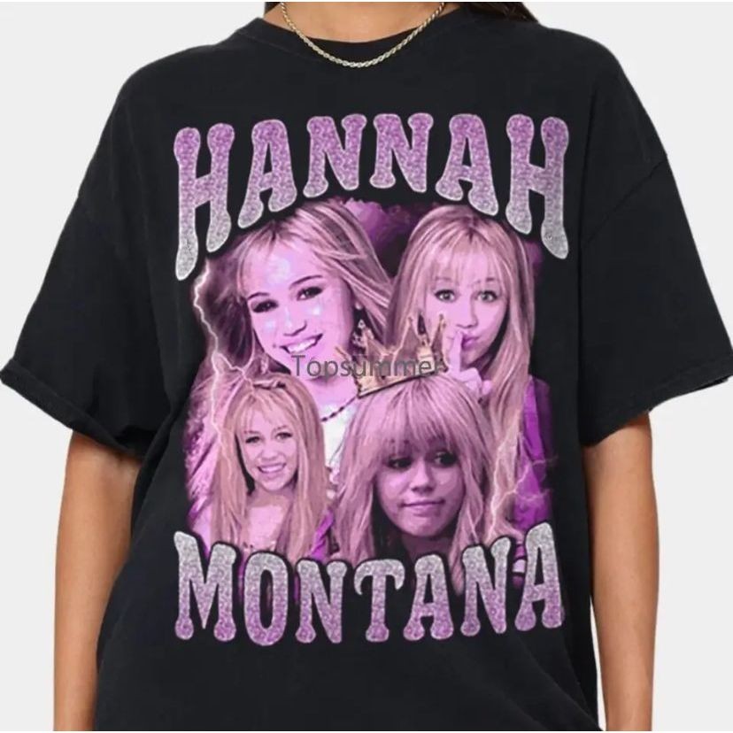 [Camiseta Premium em Algodão Puro]TT Camiseta T - Shirt Hannah Montana blusa elegante de frio feminina black pink