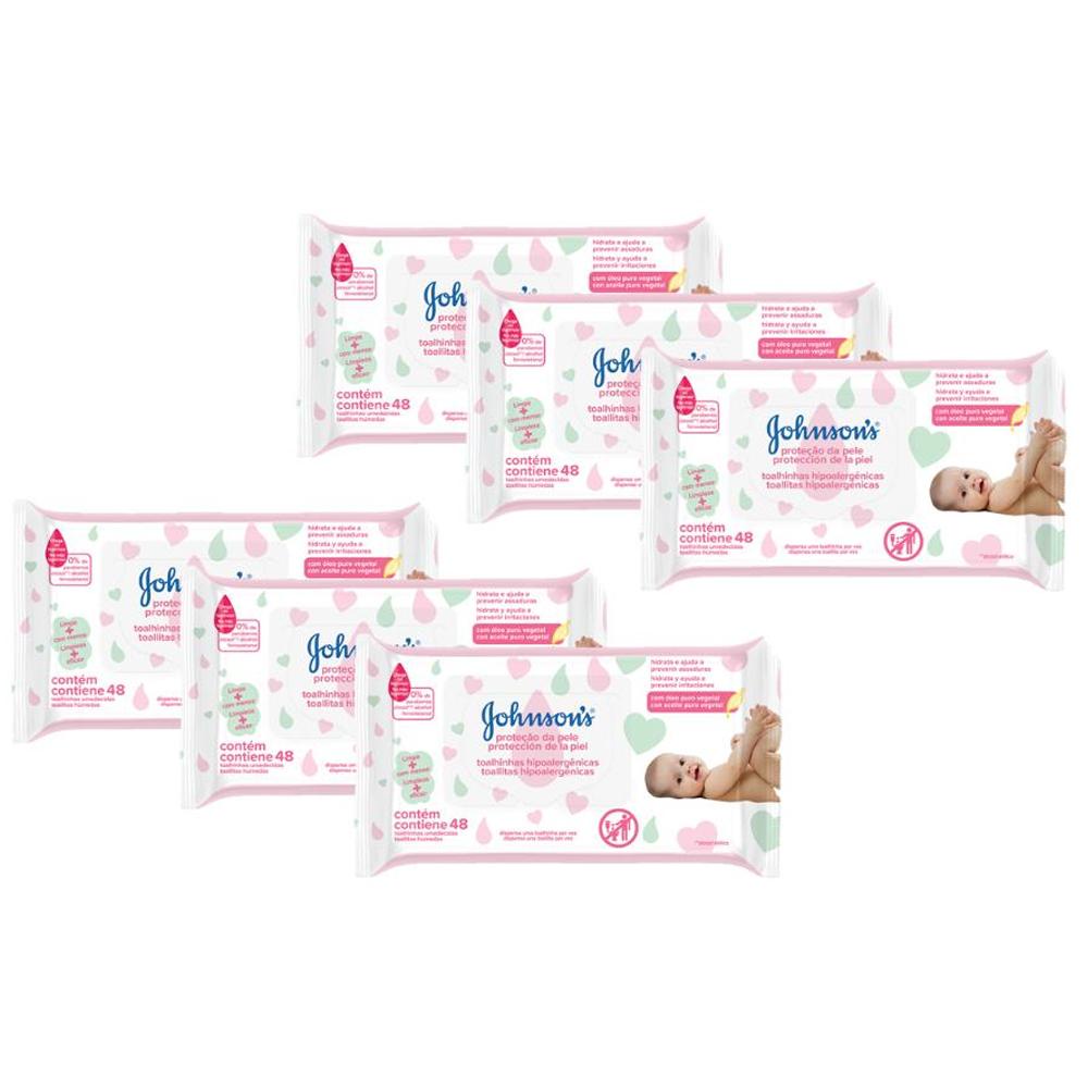 Kit com 6 Lenços Umedecidas Johnson's Baby Recém-Nascido 48un cada