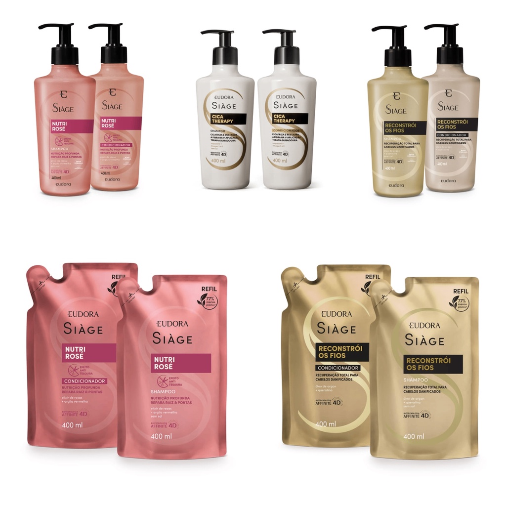 Eudora Siàge Shampoo 400ml/Condicionador 400ml (Nutri Rosé/Cica Therapy/Reconstrói os Fios)