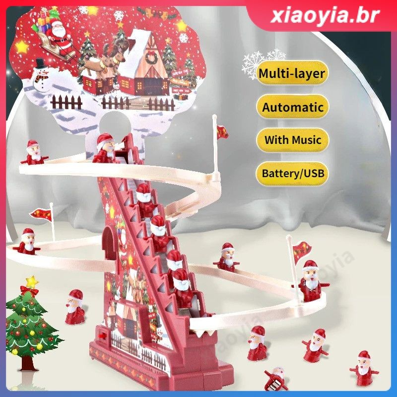 Escada de escalada elétrica Papai Noel DIY Trilho de corrida Pista de corrida de Natal Slides Música Montanha-